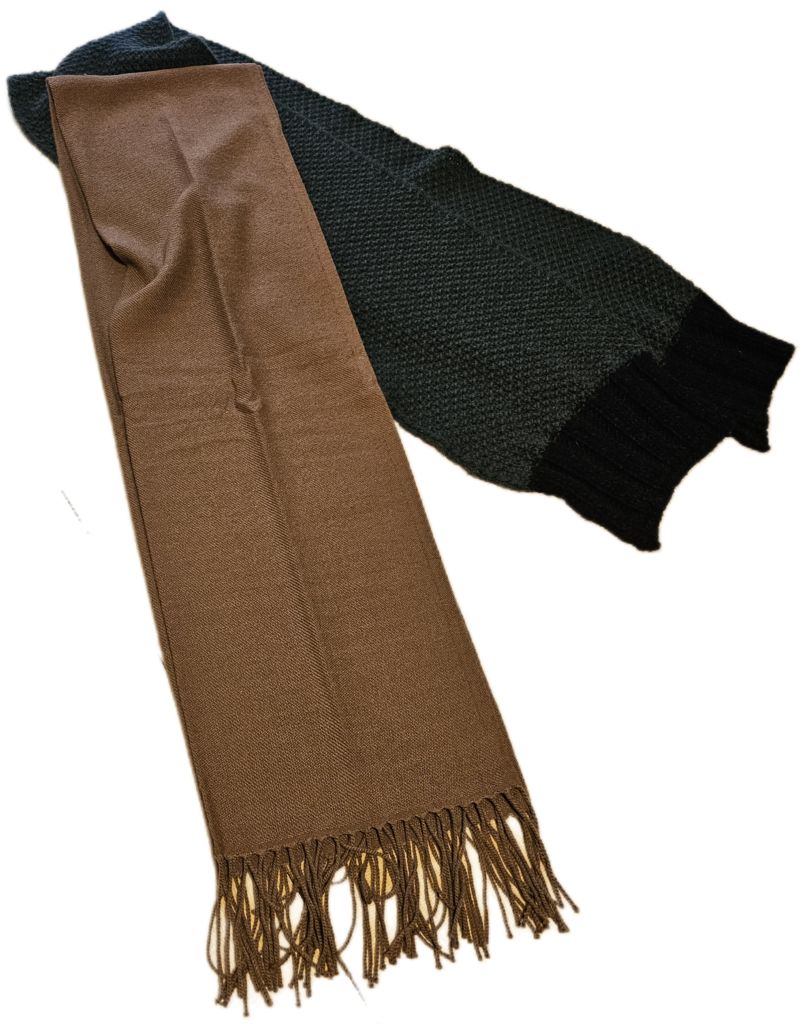 マフラーには劣るが、もちろん寒い日の防寒用としての役割も果たしつつ、春や秋には軽く羽織ったりすることもできる防寒性に加え、装飾性と軽さを兼ね備えた万能アイテムなのだ。